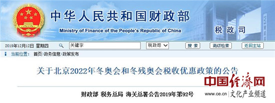 關(guān)于北京2022年冬奧會(huì)和冬殘奧會(huì)稅收優(yōu)惠政策的公告