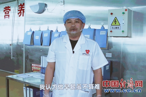 趙志新是一名食品安全員,也是陜西榆林四海食品配送有限責(zé)任公司生產(chǎn)班組組長。公司為榆林地區(qū)日供應(yīng)早餐10萬份。“為了保障大家吃得放心,我們的工作有一套嚴(yán)格流程,從原料采購、加工、留樣到銷售,任何一個(gè)環(huán)節(jié)都不能出問題?!壁w志新說。