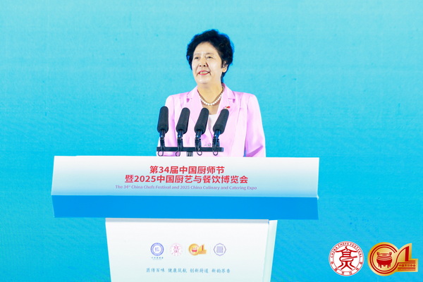 中國烹飪協(xié)會會長楊柳致辭(中國烹飪協(xié)會供圖)