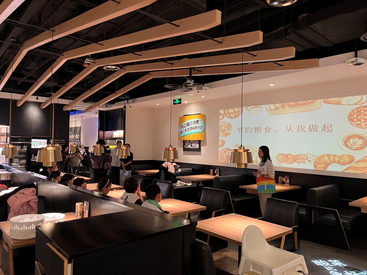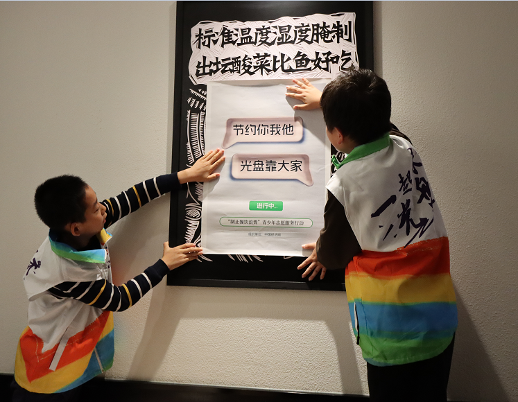 活動將科普與實踐相結合,青少年志愿者們學以致用,在實踐環(huán)節(jié)化身“制止餐飲浪費”宣傳員,向餐廳中的消費者宣傳節(jié)糧反浪費知識。