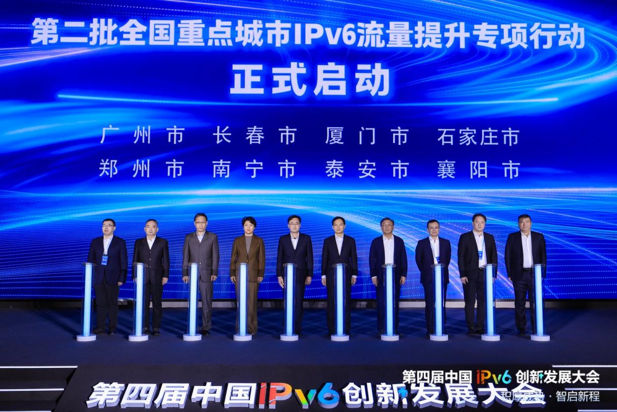 成果發(fā)布環(huán)節(jié),與會各方共同見證了中央網(wǎng)信辦、工業(yè)和信息化部組織開展“全國重點城市IPv6流量提升專項行動”的經(jīng)驗和成果,8個重點城市固定網(wǎng)絡IPv6流量占比同比增長63.14%,移動網(wǎng)絡IPv6流量平均占比同比增長12.37%。中央網(wǎng)信辦信息化發(fā)展局、工業(yè)和信息化部信息通信發(fā)展司及第二批8個重點城市相關領導,共同啟動“第二批全國重點城市IPv6流量提升專項行動”,深化關鍵環(huán)節(jié)升級改造,帶動全國IPv6發(fā)展水平再上新臺階。會上還發(fā)布了工業(yè)和信息化部、中央網(wǎng)信辦組織開展“網(wǎng)絡去NAT”專項工作的階段性成果:9個試點地區(qū)基礎電信企業(yè)自有環(huán)境固定寬帶用戶IPv6連通率達97.52%,試點地區(qū)NAT44設備容量全面實現(xiàn)零增長。后續(xù),相關部門將在試點經(jīng)驗基礎上,在全國范圍內進一步開展“網(wǎng)絡去NAT”專項工作,持續(xù)推動網(wǎng)絡和應用的IPv6演進升級。