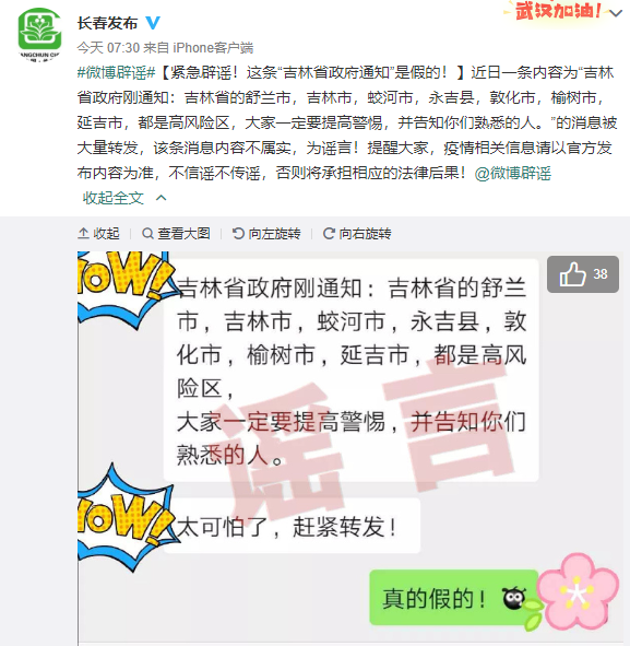 謠言粉碎機三:“吉林省政府通知”:吉林多市屬高風險區(qū)?假的!