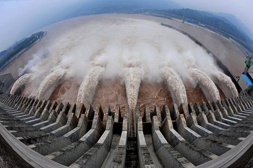 2008年8月13日,長(zhǎng)江入汛以來(lái)的最大一次洪水順利通過(guò)三峽工程向中下游推進(jìn),中下游水位持續(xù)上漲,三峽工程運(yùn)行正常。2009年汛期,三峽水庫(kù)的防洪庫(kù)容已達(dá)146億立方米,開始發(fā)揮攔洪調(diào)峰和枯水期給下游補(bǔ)水的功能,下游荊江河段防洪標(biāo)準(zhǔn)已從十年一遇提高到了近百年一遇,長(zhǎng)江中下游的防洪體系初步形成。新華社記者杜華舉攝